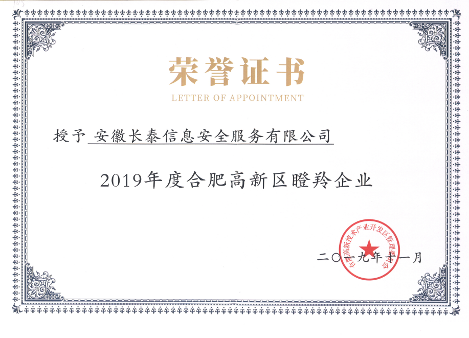 2019年,11月20日,合肥高新区2019年高成长企业榜单正式发布,高新区共认定了502家高成长企业,其中雏鹰企业275家、瞪羚培育企业72家、瞪羚企业149家、潜在独角兽企业3家、独角兽企业1家、平台型龙头企业2家。作为其中的高科技企业——安徽米兰官方端网站在线-米兰(中国)成功入选瞪羚企业榜单。